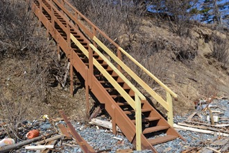 Tide running out under F.D.R. International Bridge I went on to see the damage caused by the winter storms. The view platform at Liberty Point is in need of major repair.